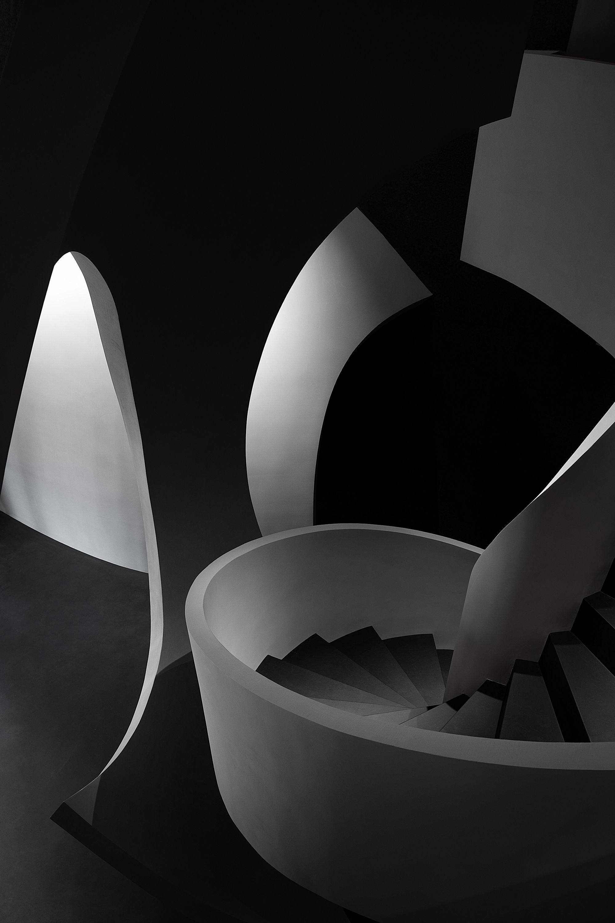 Situated at Qunli New District, Harbin, China, the project is a beauty salon that mainly targets female consumers. The entrance wall echoes the arcs of the architecture with its curved shape, creates a unique perspective to look inside, and indicates a sense of mystery in the space.