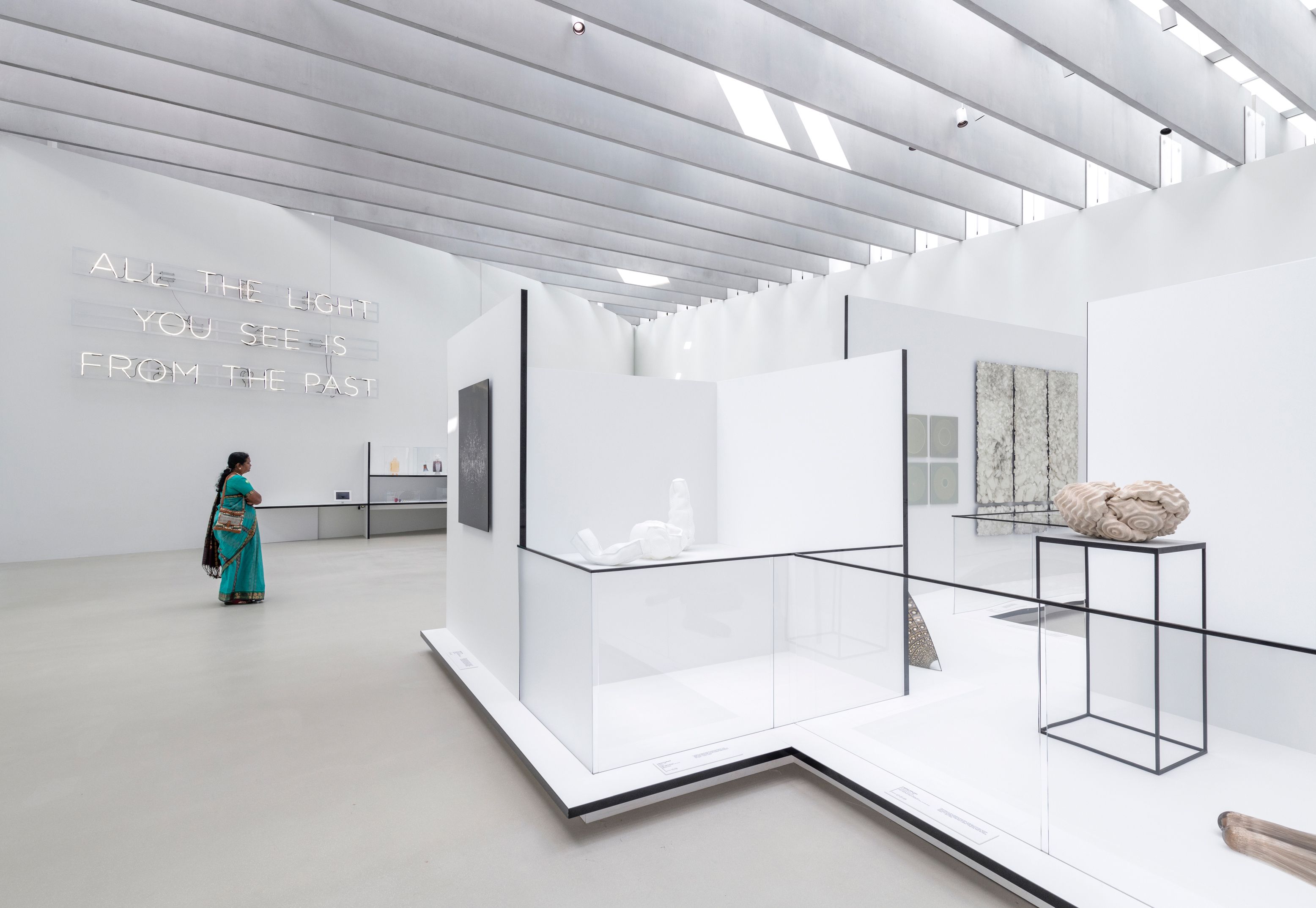 "New Glass Now" was curated from an open call of international submissions. Many visitors are not familiar with the traditions of display in art museums, so there was an intentional use of enclosures and protections for all pieces. The challenge was to make this gallery still feel inviting and reduce the sense of separation between art and audience, which was done through clear and frosted Gorilla glass at varying heights. Although each object had a different artistic intention there is a narrative thread of glass as a medium and a muse in this highly abstract exhibition design.