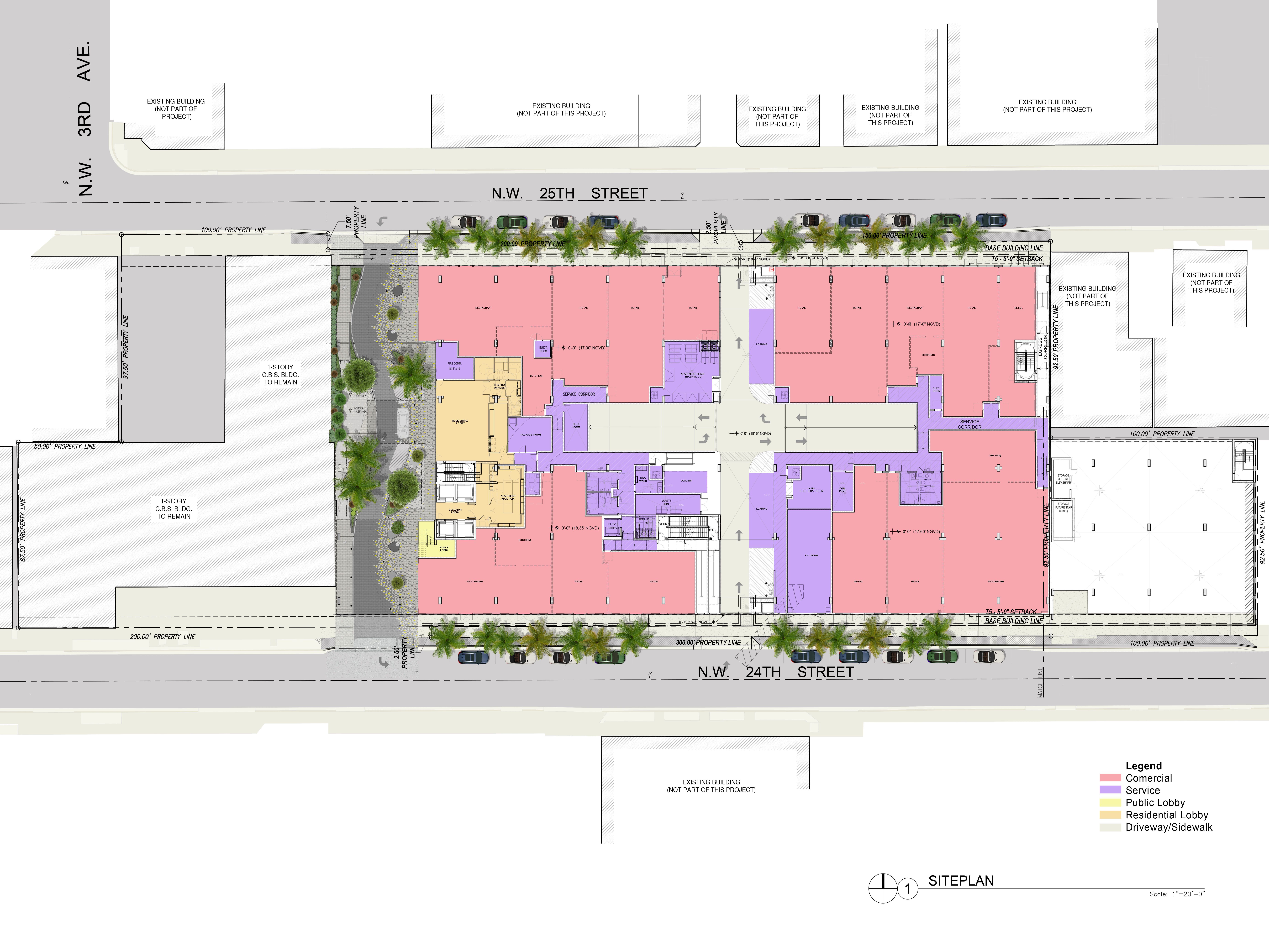 surrounding environment as a source of inspiration for spatial planning while designing for conservation and progress of the Wynwood neighborhood. It will activate the neighborhood at all hours. The building includes 289 residential units and 31,000-square-foot of ground-floor retail space. The project focuses on maintaining the character and culture with its design, appeal, and public spaces, focusing on the needs of new generations.