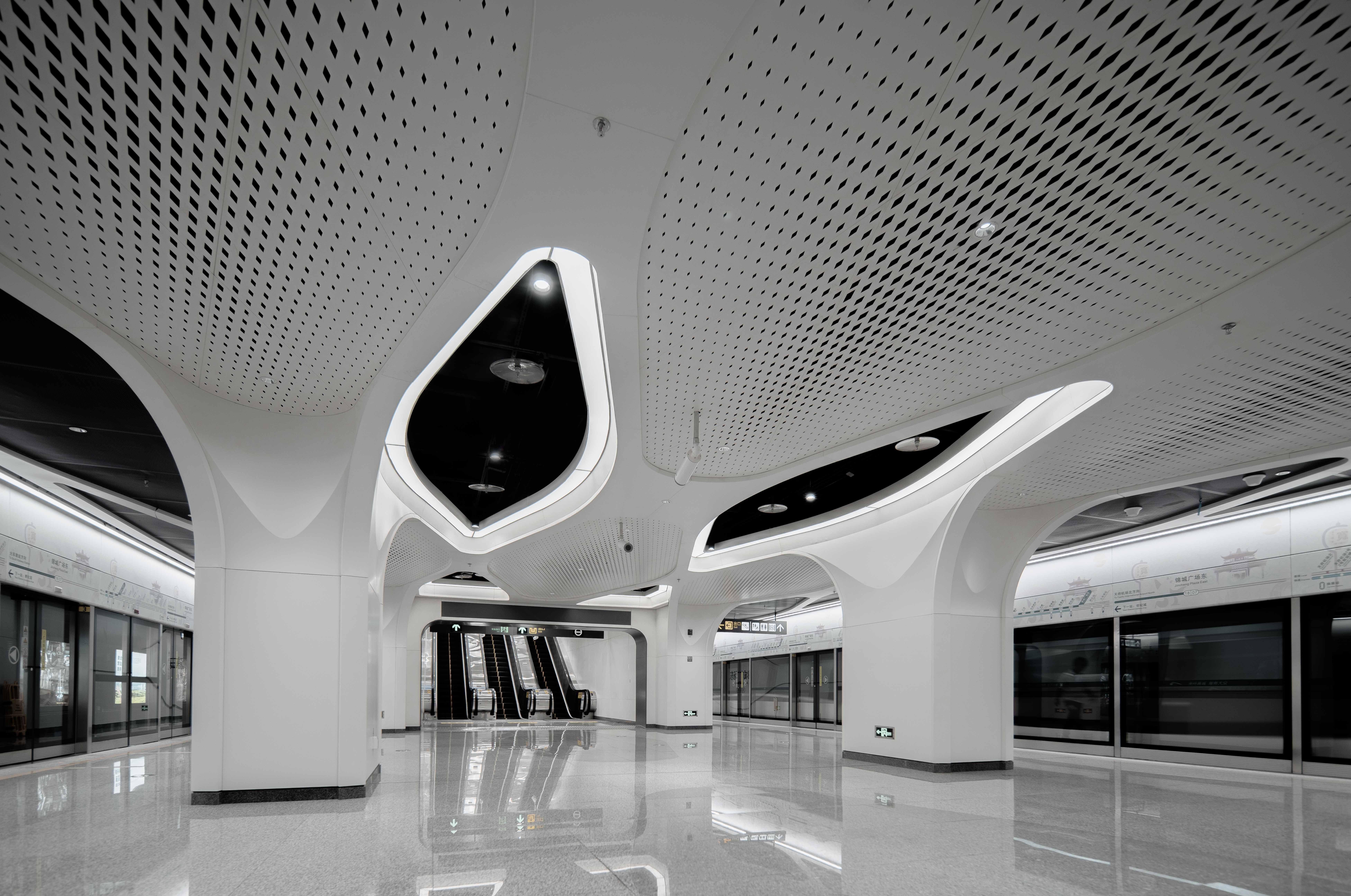 Chengdu Metro Line 18 echoing the development prospect of Chengdu.Based on the important strategic position of Chengdu Metro Line 18, J&A creates public space in the line with the principles of urban design, optimizes the urban experience according to the scale of pedestrians. Positioning the theme of “Brilliant History, Technological Future" as the overall design style for Line 18. A bridge is built between the past and the future of Chengdu, showing the legacy of of Chengdu, highlighting the dazzling colors of Chengdu, and looking forward to the future of Chengdu.
