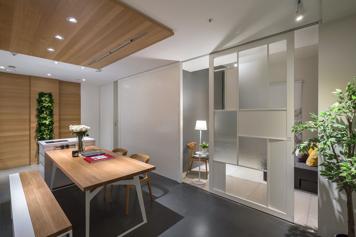The bilateral living areas, with the concept of "the Chamber of Secrets" - the bed could be hidden at the ordinary working time.