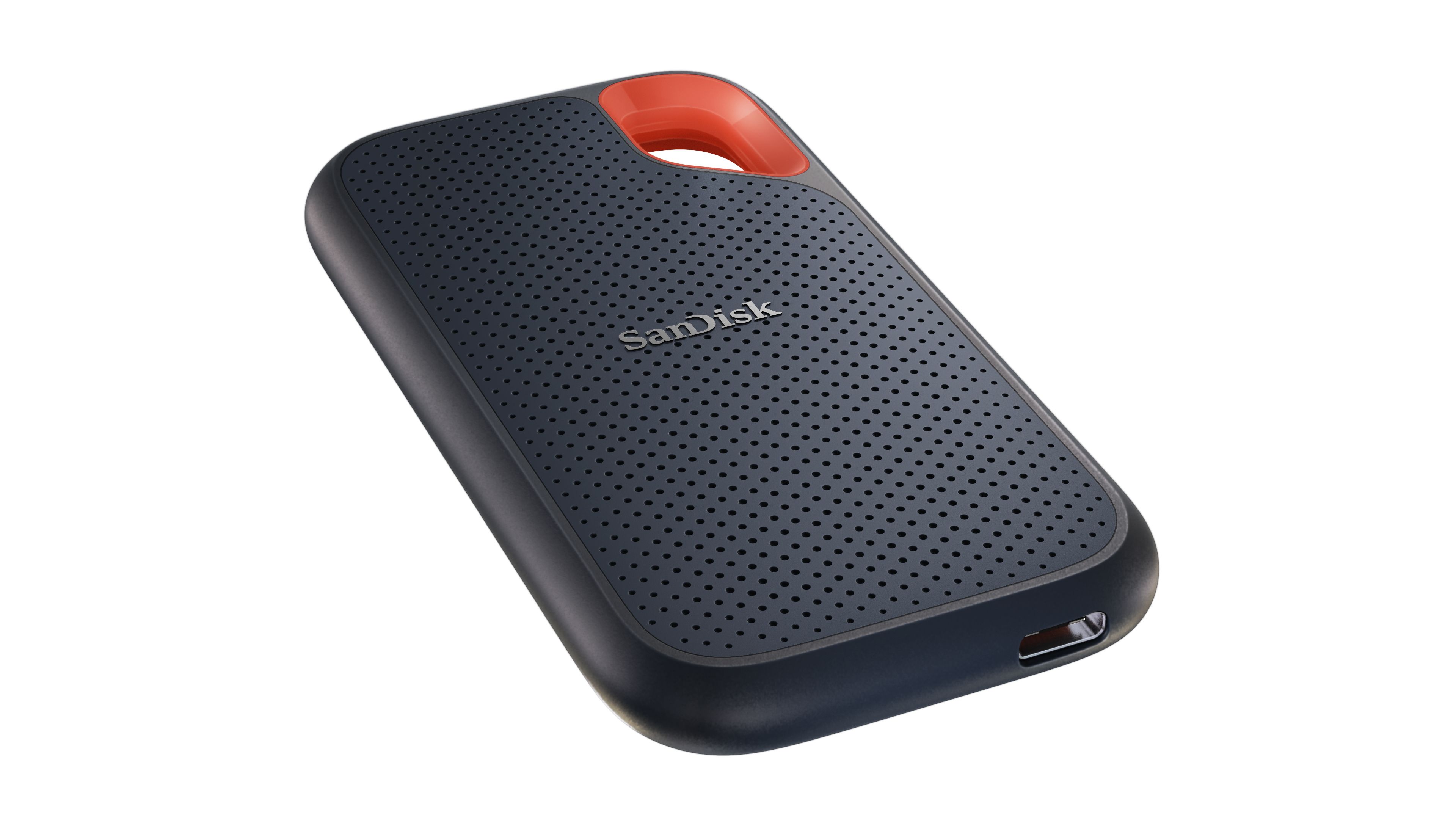 The SanDisk Extreme SSD is designed for the outdoor enthusiast where performance, durability and a rugged aesthetic matter. The drive was created with a rigid ABS core with a silicone exterior. Not only does the silicone feel great it keeps water out and acts as a bumper passing an IPX55 water and dust resistance2 protection rating. The signature carabiner detail along with the discrete perforated pattern elevates a recognizable design language throughout the line of products.