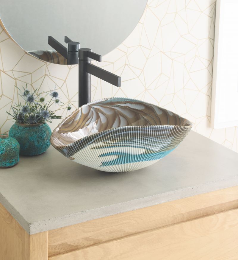 Part of the new Murano Collection, Amalfi is an exquisite glass vessel sink crafted by Italian glassmakers. Murano glass is a new material for Native Trails and exemplifies the brand’s commitment to championing age-old artisan traditions by creating products for the modern world. The shell-shaped bowl of Amalfi adds texture to transitional bathrooms and is offered in three finishes — Abalone, Bianco and Shoreline. With colors and patterns created by a molding and spinning process, each sink is expertly hand-formed, serving as a one-of-a-kind irreplaceable work of functional art.