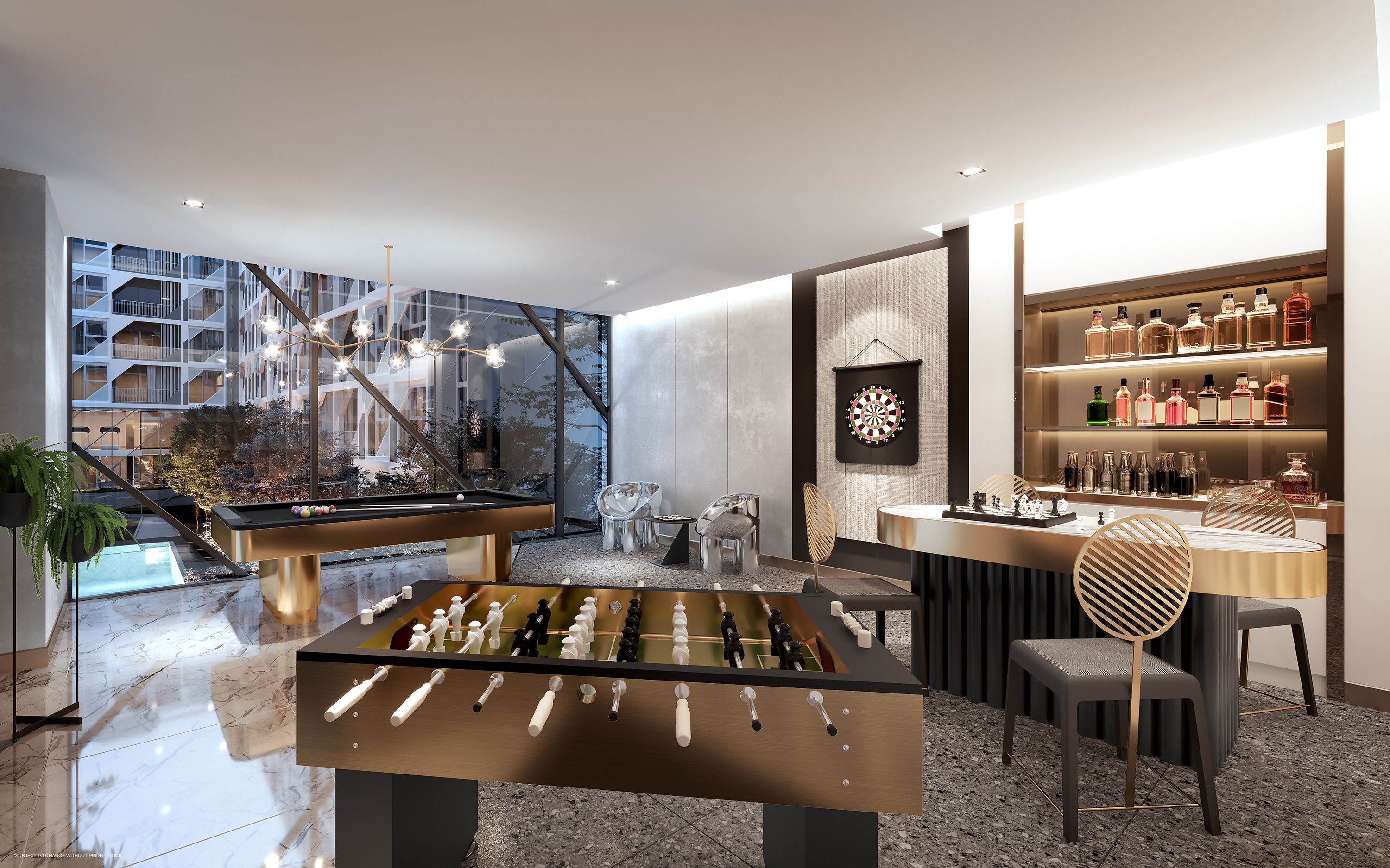 CONCEPT DESIGN : Main Design Concept is “Continuity” There are two buildings lay in O shape enclosing the courtyard and a swimming pool in the center, creating the privacy for the green space as a secret garden. In this green space. The circulation inside the buildings are designed concerning the ventilation with openings provided at the end and middle of the building. Further, the rooftops of both buildings are created to be a park to increase green space as a rest area and outdoor exercise space