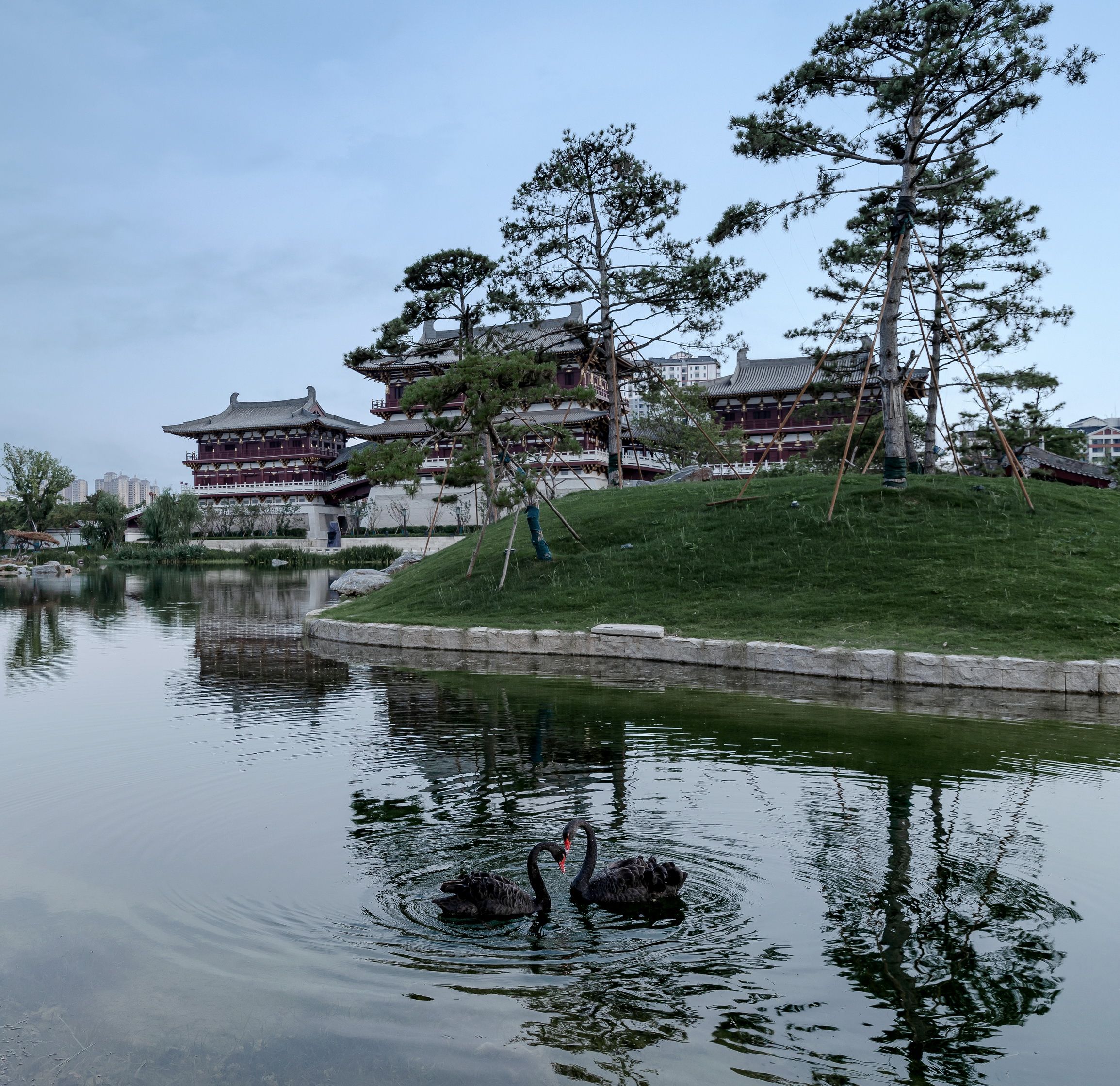 Jiuzhou Pool of Sui and Tang Dynasties is located at the intersection of Dingding Road and Middle Tanggong Road in Luoyang City, Henan Province. The overall landscape structure of the whole park is designed as “one axis, three zones and multiple nodes”. The project aims to restore and reproduce the antique grace of Sui and Tang dynasties with the Jiuzhou Pool site as the center, forming an axis sequence with the already-built Ming Hall and Tian Hall, and creating a municipal park for citizens that integrates historic site display, entertainment and leisure, and cultural tourism.