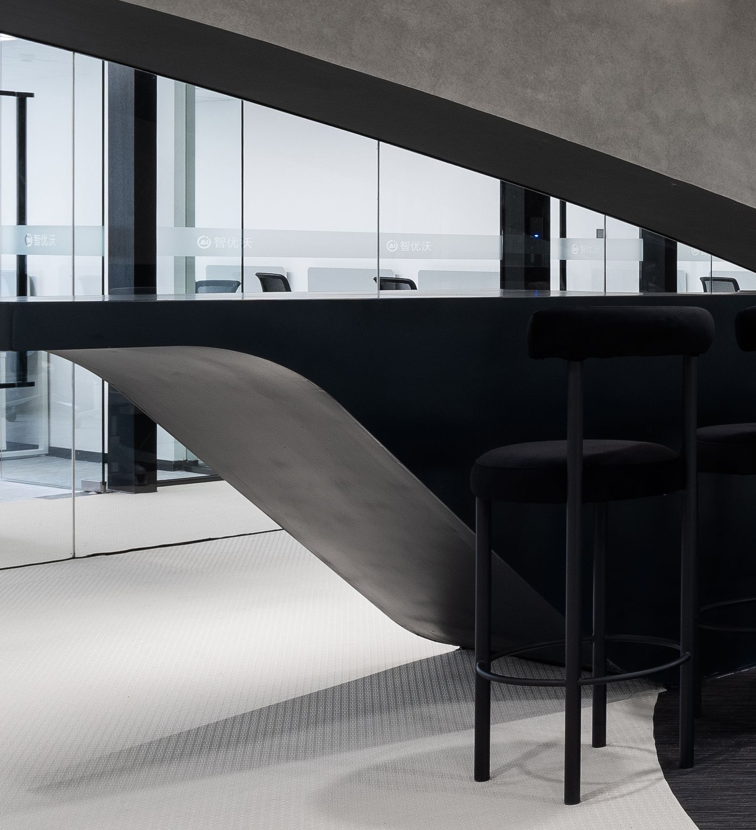 This project is a Zhiyouwo shared workspace in Shaoxing. The design is inspired by calligraphy. We hope to present traditional ink calligraphy in Shaoxing in the form of modern art installations in a three-dimensional space, so that the office space presents a different kind of joint The cultural and artistic sense of the office makes the office immersed in the artistic conception of ink and calligraphy.