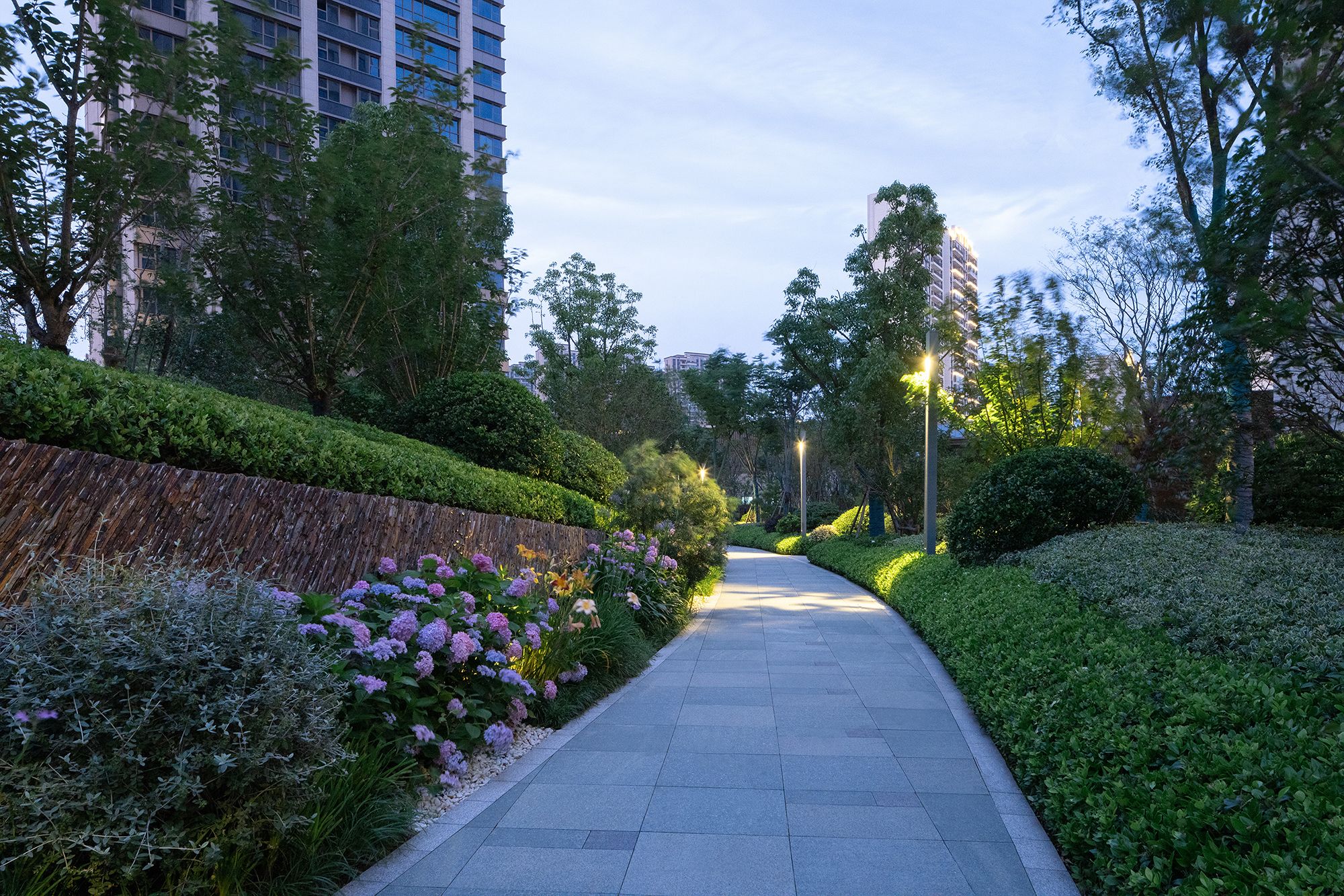 The project draws on the local culture of Yancheng and fuses with elegant curves of the undulating wetland. The meandering circulation becomes a fantastic landscape feature in the park as well as a unique landscape language, to express the beauty of Yancheng’s mountains and waters. Meanwhile, based on the concept of “central park”, the landscape design is spread around the central garden, with functional spaces like the children’s playground, pet paradise, sports area, art space, etc. placed at the surroundings. The whole design aims to give occupants an immersive experience.