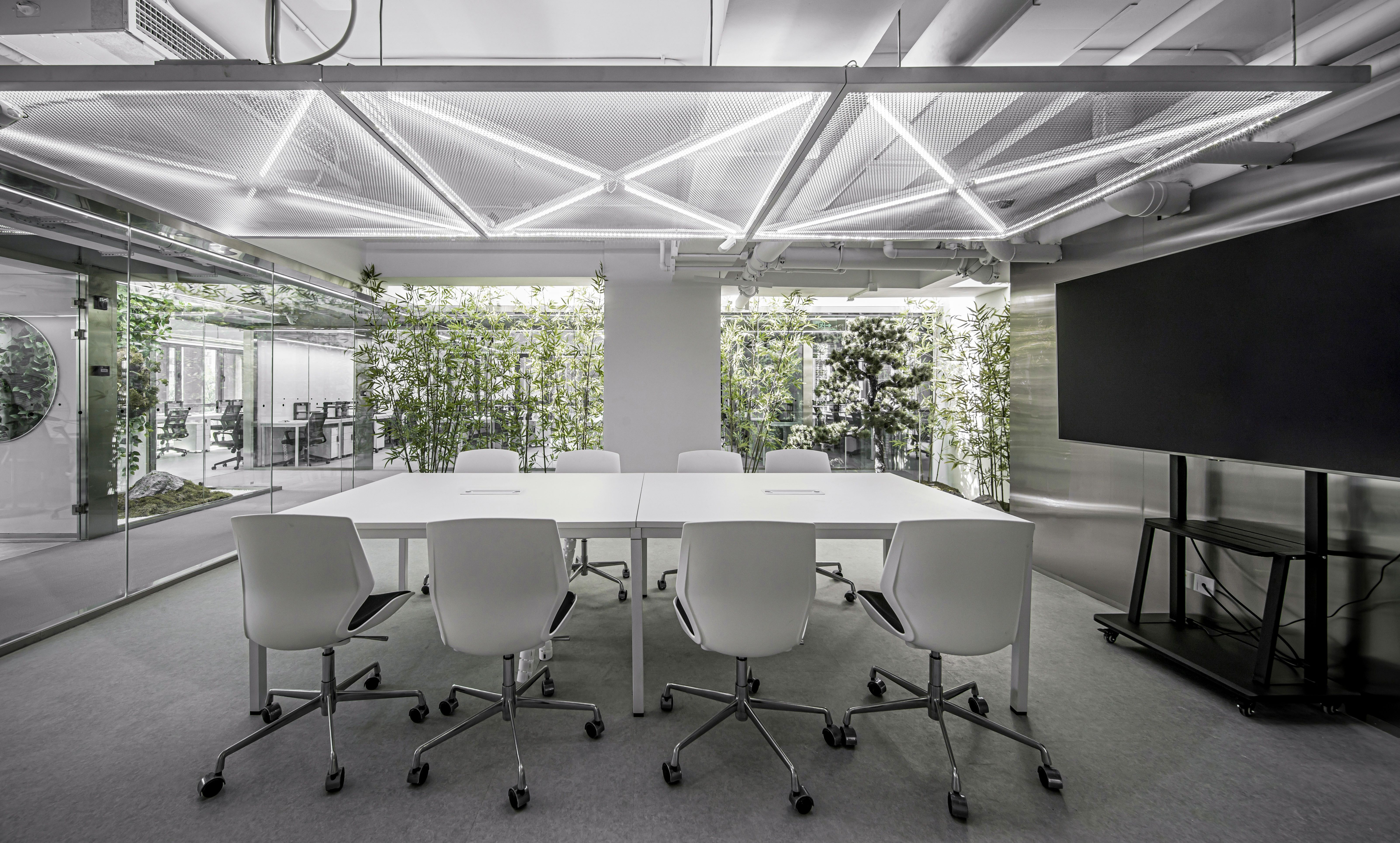 We bring multidimensional space and botanical garden to collide into office space,by giving the user a scene in which they can receive a strong feeling of immersion into the scientific experiences themselves. We set the scene of how parallel space passes through times which to pay the tribute to the movie-2001: a space Odyssey.In order to connect each of the interior spaces into chapters when we enter the dimensions. Each space is a unique space of multidimensional space. The building entrance is like a tunnel, When the door opens, revealing the eye of the multidimensional space.