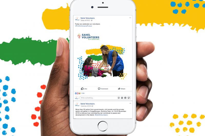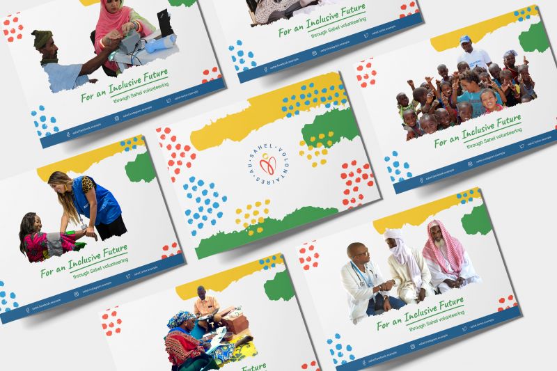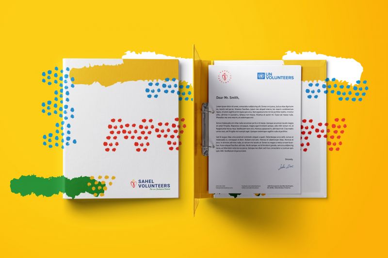 The Sahel region is one of the major crisis environments in Africa and one of the places where volunteers significantly impact people’s lives. Vibrant visual identity developed for UNV celebrates volunteers in the region and recognizes them as a catalytic and strategic force for peace and development for the millions of people that are under pressure. Sahel Volunteers logo, colour set, and typography reflect the geography and sustainable development strategy for the region while placing volunteers at its core. Materials were developed for print and digital use, in English and French.