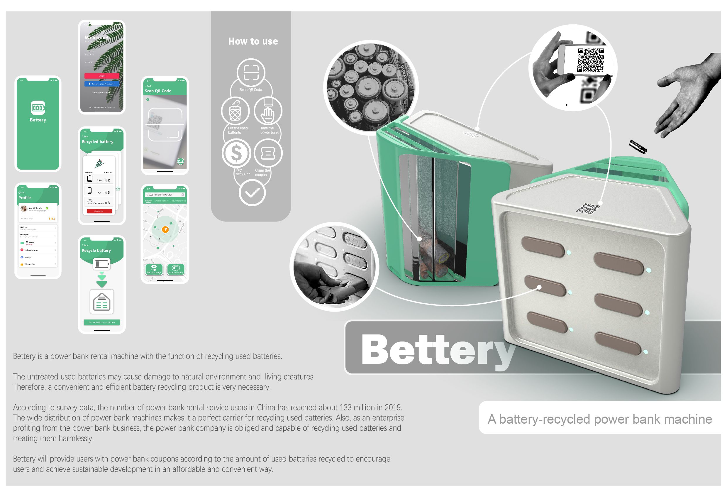 Bettery is a shared power bank machine with the function of recycling used batteries.