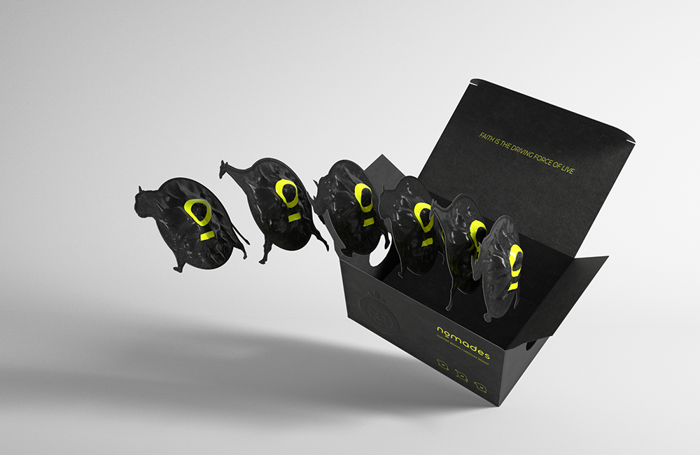 The brand's name is NOMADES.We have designed a regional characteristic African indigenous face graphic, which not only reflects the professionalism,but also brings a bit of fun for the overall tonality,to help the brand to enter the young market.In the packaging and overall vision of VI,we added elements of tropical animals and designed them into the shape of balloons. On the one hand,this is to highlight more intense regional customs; on the other hand, this is to attract the attention of consumers with exaggerated shapes,so as to better improve brand differentiation and user stickiness.